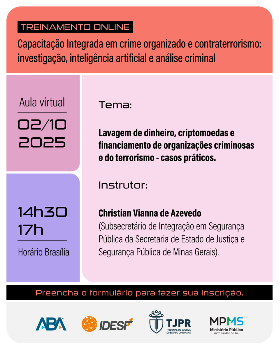 Capacitação Integrada em crime organizado e contraterrorismo: investigação, inteligência artificial e análise criminal”